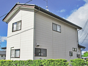 グループホームの外壁塗装のご依頼です。外壁が経年劣化でぼそぼそになっていたので、全面塗装と、一部張り替えも行いました。