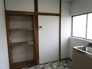 キッチン横はもともと引き戸になっており勝手口とつながっていましたが、ふさいで壁にすることにしました。